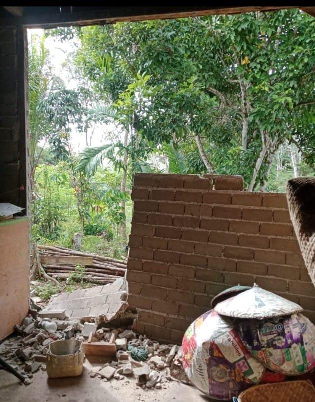 Theasianewsone.com – Sintang. Sejumlah rumah warga di Kecamatan Kayan Hilir, Kabupaten Sintang mengalami kerusakan akibat gempa bumi yang terjadi pada Jumat (23/1). Getaran juga menyebabkan jembatan ranka baja sepanjang 30 meter di Desa Nanga Tikan bergeser posisinya. Di Kota Sintang, banyak warga merasakan getaran yang cukup kuat. Benda-benda ringan yang digantung tampak bergoyang di dalam rumah, dengan getaran yang terasa seperti ada truk besar yang melintas. Herman, salah satu warga Sintang, menyampaikan: “Gempa yang terasa tadi membuat kami sekeluarga kaget dan sontak berlarian keluar rumah.