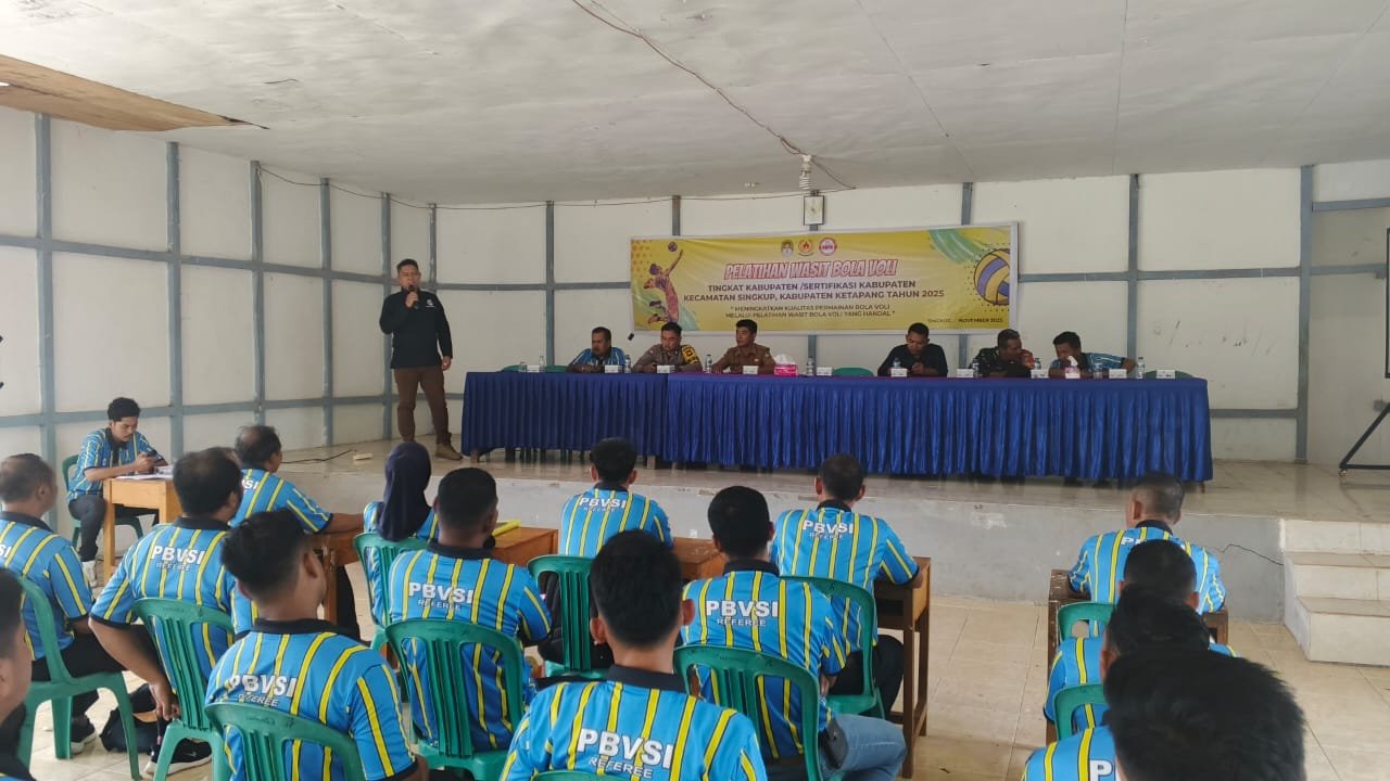 Theasianewsone,Ketapang — Pelatihan wasit bola voli indoor tingkat kabupaten resmi ditutup pada Selasa, 18 November 2025, setelah berlangsung selama empat hari sejak 15 November 2025. Kegiatan ini dilaksanakan di Kecamatan Singkup dan diikuti oleh 18 peserta dari enam kecamatan, yakni Singkup, Jelai Hulu, Air Upas, Kendawangan, dan Nanga Tayap.